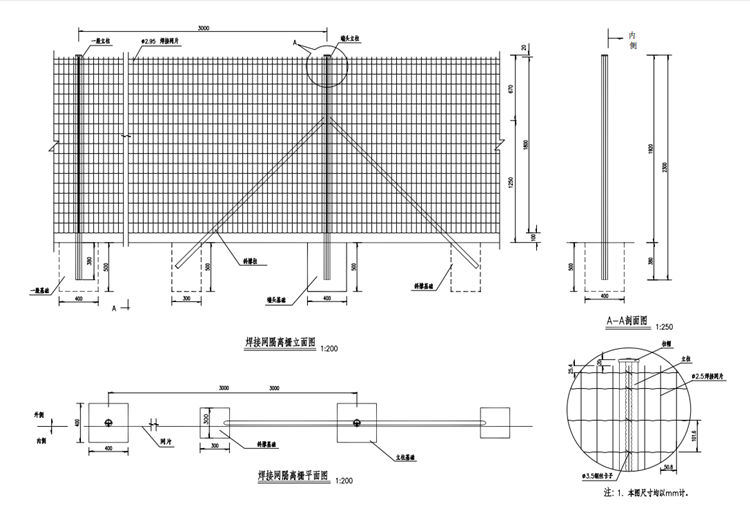 全線除天然屏障處(河流、溝渠等),其余地方(包括旱橋部分)均連續(xù)設(shè)置結(jié)構(gòu)合理、美觀大方的焊接網(wǎng)隔離柵。焊接網(wǎng)隔離柵適用于互通式立交、服務(wù)區(qū)和沿線蒸發(fā)池等重點(diǎn)路段等范圍內(nèi)。焊接網(wǎng)隔離柵應(yīng)設(shè)在路基兩側(cè)用地界碑內(nèi)0.3米處,地形有起伏時(shí),焊接網(wǎng)隔離柵按階梯形設(shè)置;焊接網(wǎng)隔離柵遇到≤3米的溝渠或涵洞時(shí),可采用直接經(jīng)過;每段焊接網(wǎng)隔離柵的起終點(diǎn)或焊接網(wǎng)隔離柵需要斷開的地方,應(yīng)針對不同的情況做端頭圍封,在焊接網(wǎng)隔離柵需改變方向的地方,應(yīng)做拐角處理。焊接網(wǎng)隔離柵基礎(chǔ)預(yù)制施工。為滿足公路、橋梁和通道等養(yǎng)護(hù)管理的需要,可在適當(dāng)位置設(shè)置便于開啟以滿足車輛或人員進(jìn)出的焊接網(wǎng)隔離柵活動門,焊接網(wǎng)隔離柵的立柱需要根據(jù)活動門的大小和開啟情況進(jìn)行加強(qiáng)。焊接網(wǎng)隔離柵的鋼構(gòu)件均應(yīng)做熱浸鍍鋅防腐處理。鍍鋅時(shí)應(yīng)符合下表的規(guī)定,熱浸鍍鋅所用的鋅應(yīng)為符合《高速公路交通工程鋼構(gòu)件防腐技術(shù)條件》中引用的GB/T470中所規(guī)定的0號或1號鋅錠。鍍鋅后再鍍塑,顏色為果綠色。