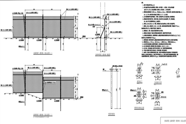 3、網(wǎng)圍欄類型為鍍鋅鋼絲網(wǎng),絲經(jīng)5.0mm ,網(wǎng)孔為80mmx80mm.安裝要求應(yīng)按照《公路交通安全設(shè)施設(shè)計(jì)規(guī)范》JTGD81-2017和《 公路交通安全設(shè)施施工技術(shù)規(guī)范》JTG F71-2018執(zhí)行。