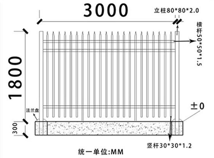 電力實訓(xùn)基地鋅鋼護(hù)欄參數(shù)要求: