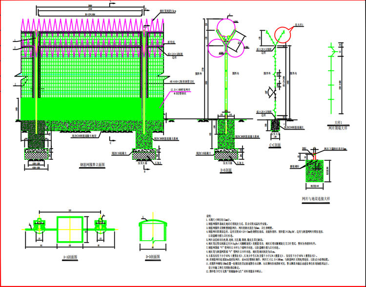 鋼筋網(wǎng)刺鐵絲圍界設計要求: