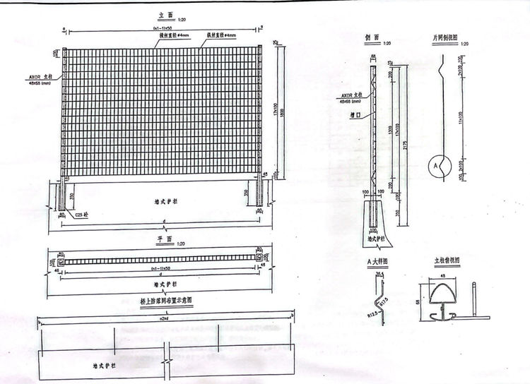 2.橋上防落網(wǎng)立柱埋入墻式護欄內(nèi)35cm。