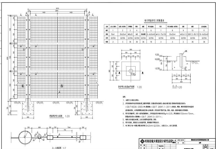1.本圖生活垃圾填埋場焊接網(wǎng)護(hù)欄尺寸以毫米為單位。
