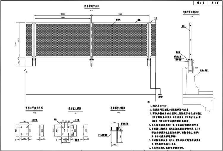 7、本圖適用于橋梁、通道處防落物網(wǎng)的設(shè)置。