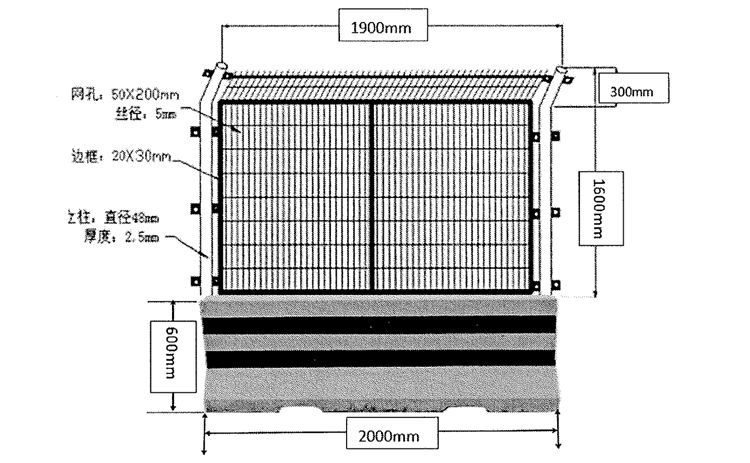 11、臨港場(chǎng)地碼頭隔離圍欄(含水泥座)總高度2200mm。