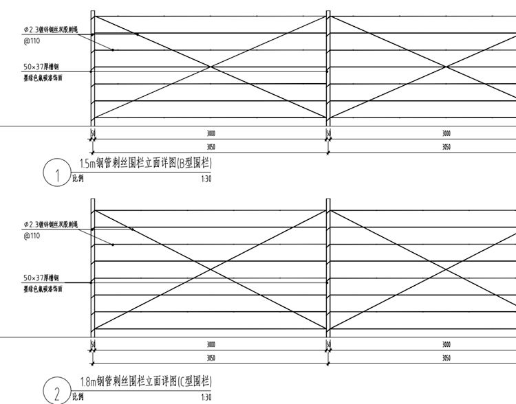 2.刺絲間距110mm;