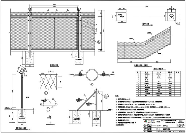 1.圖中水庫鋼板網(wǎng)護欄尺寸單位均以mm計。