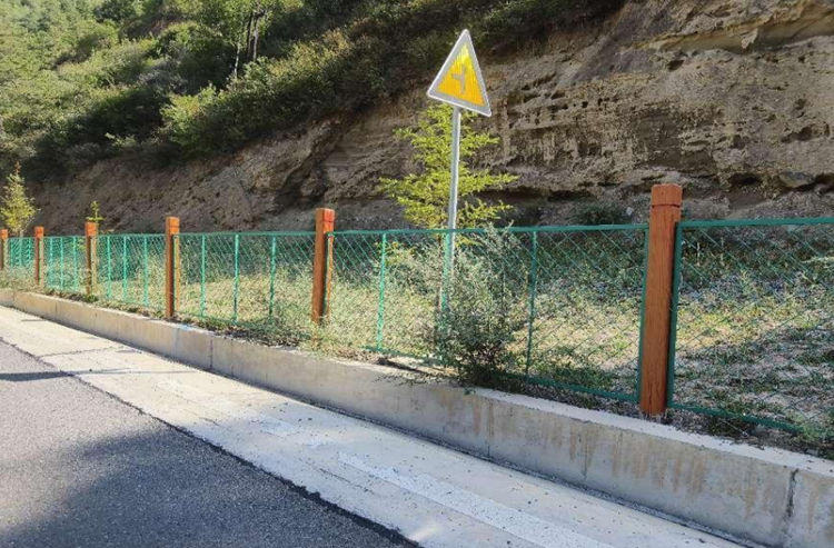 農(nóng)田防護(hù)網(wǎng)基礎(chǔ)做法:C25砼立柱基座為300mm*350mm*400mm(砼立柱埋入地下 300mm),基座采用 C25現(xiàn)澆混凝土,基礎(chǔ)100mmC15混凝土墊層。為方便村民通行方便,配套防護(hù)鐵門(mén),規(guī)格為1.8m*3m,預(yù)埋立柱高 2.1m(重量6.8斤,壁厚2mm,直徑48mm),鐵門(mén)與預(yù)埋立柱之間通過(guò)焊接連接件用螺絲將其固定。