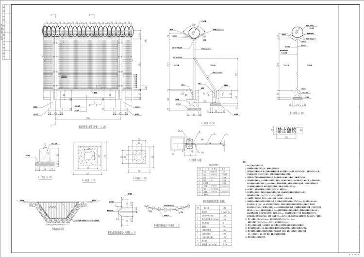1.本圖機(jī)場(chǎng)圍網(wǎng)尺寸除注明外均以厘米計(jì)。