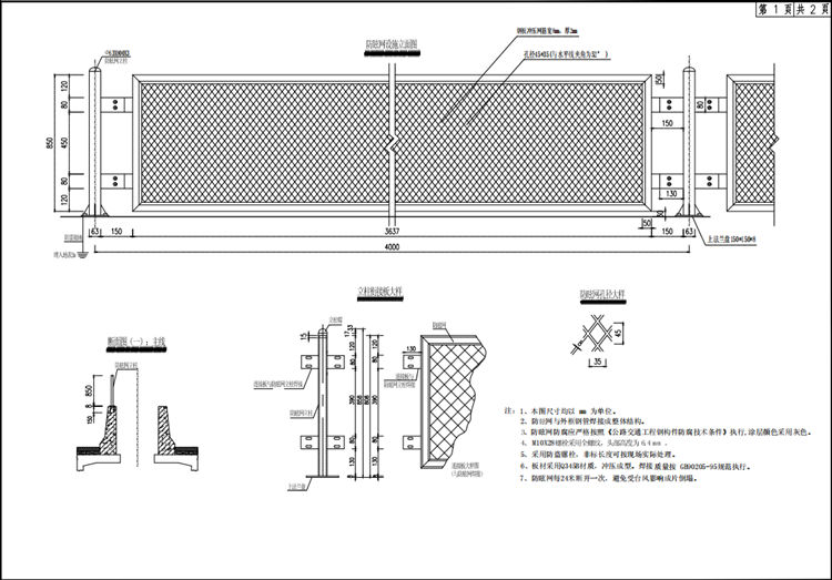 1、本圖高速公路防眩網(wǎng)尺寸均以mm為單位。