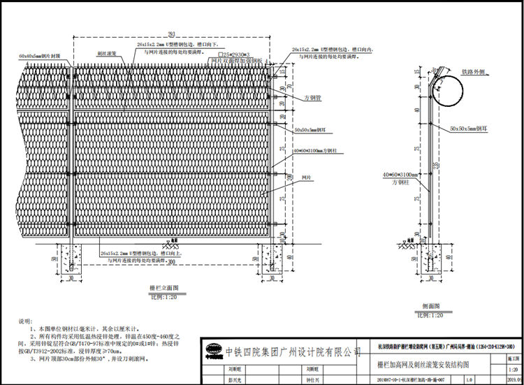 1、立柱、網(wǎng)片包邊槽鋼采用國標(biāo)Q235材質(zhì),按國標(biāo)GB/T704-88標(biāo)準(zhǔn)。