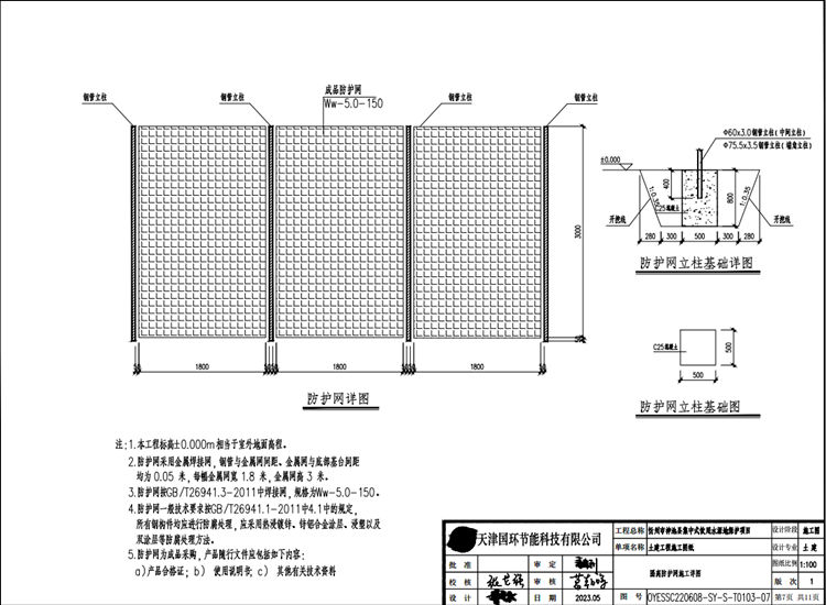 1.本隔離防護網(wǎng)工程標高±0.000m相當于室外地面高程。