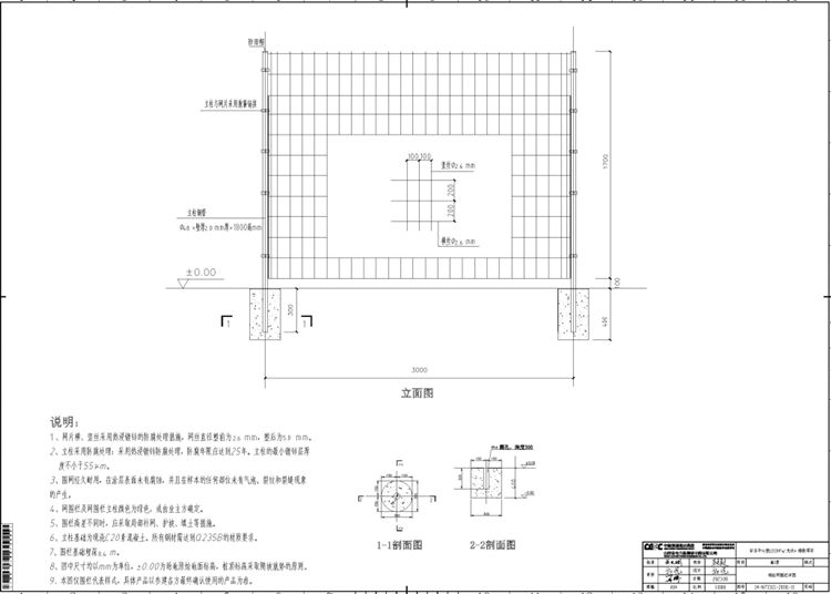 6、立柱基礎(chǔ)為現(xiàn)澆C20素混凝土。雙邊絲護欄網(wǎng)所有鋼材需達到Q235B的材質(zhì)要求。