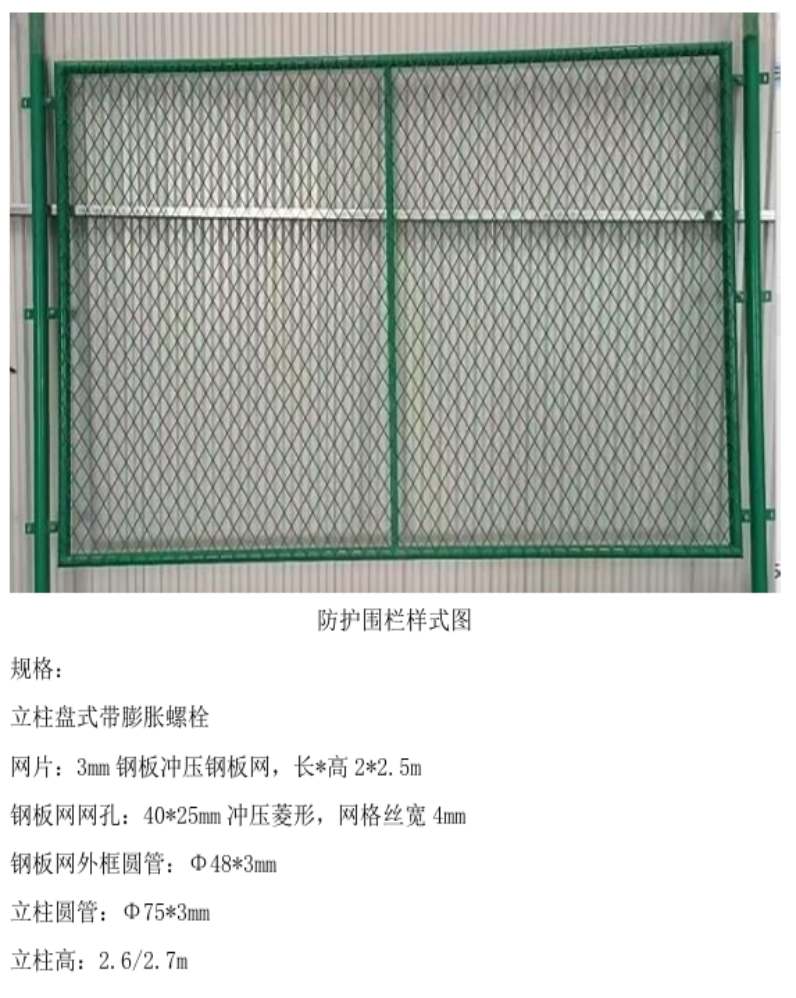 1.本批防護(hù)圍欄供應(yīng)商需負(fù)責(zé)安裝工作,供應(yīng)商需自帶電動工機(jī)具及小型設(shè)備,所帶設(shè)備需經(jīng)項(xiàng)目部驗(yàn)收合格后方可使用(驗(yàn)收資料包含但不限于合格證(或者3C認(rèn)證)、質(zhì)量證明文件),報價需含安裝費(fèi)用,采用地腳螺栓安裝方式,報價單格式及編號不得改變, 必須嚴(yán)格按照詢價表中的規(guī)格型號、材質(zhì)、技術(shù)標(biāo)準(zhǔn)報價,如有需增加內(nèi)容或異議請?zhí)峁嬲f明;