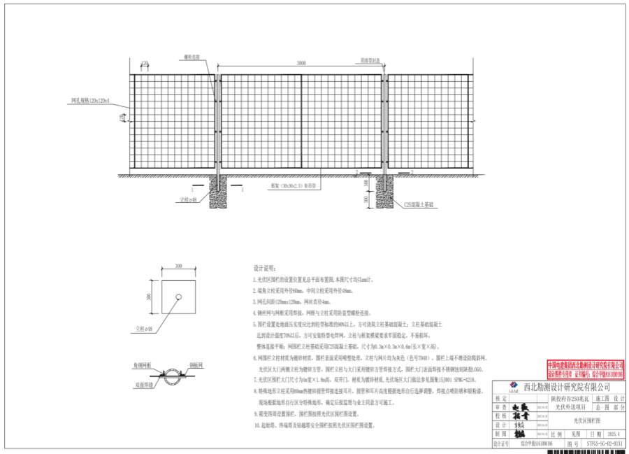 1.光伏區(qū)圍欄的設(shè)置位置見總平面布置圖,本圖尺寸均以mm計。