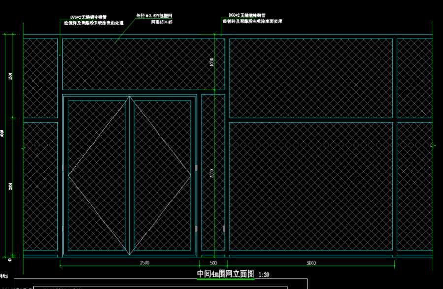 (4)網(wǎng)片:PE包塑處理,包塑圍網(wǎng)內(nèi)徑2.3mm,外徑3.6mm,網(wǎng)孔尺寸45*45mm。