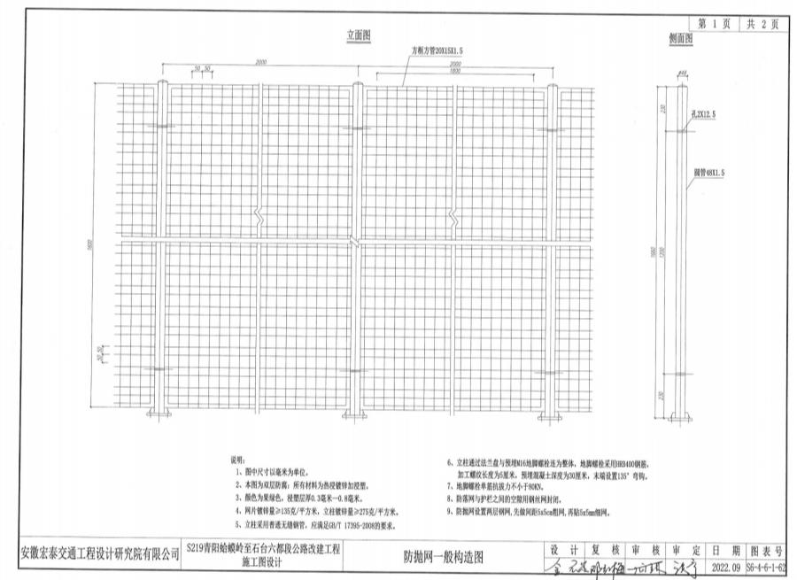 2、本圖為雙層防腐:所有材料為熱浸鍍鋅加浸塑。