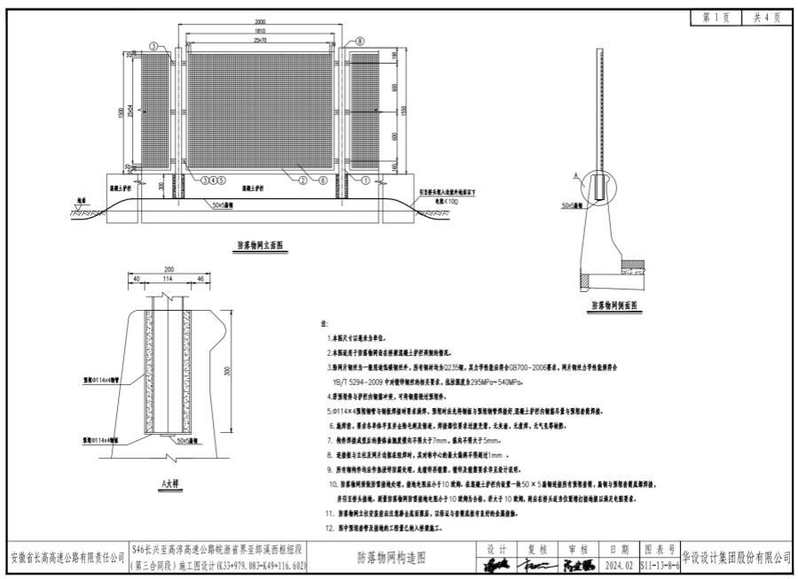 2.本圖適用于防落物網(wǎng)設(shè)在橋梁混凝土護(hù)欄兩側(cè)的情況。