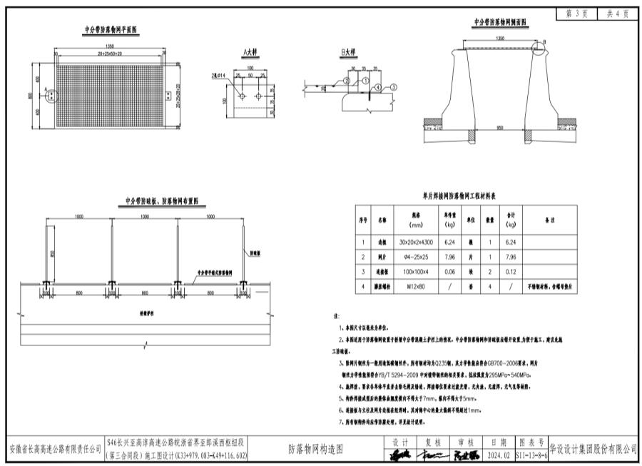 2、本圖適用于防落物網(wǎng)設(shè)置于橋梁中分帶混凝土護(hù)欄上的情況。中分帶防落物網(wǎng)和防眩板應(yīng)錯(cuò)開設(shè)置,為便于施工,建議先施工防眩板。