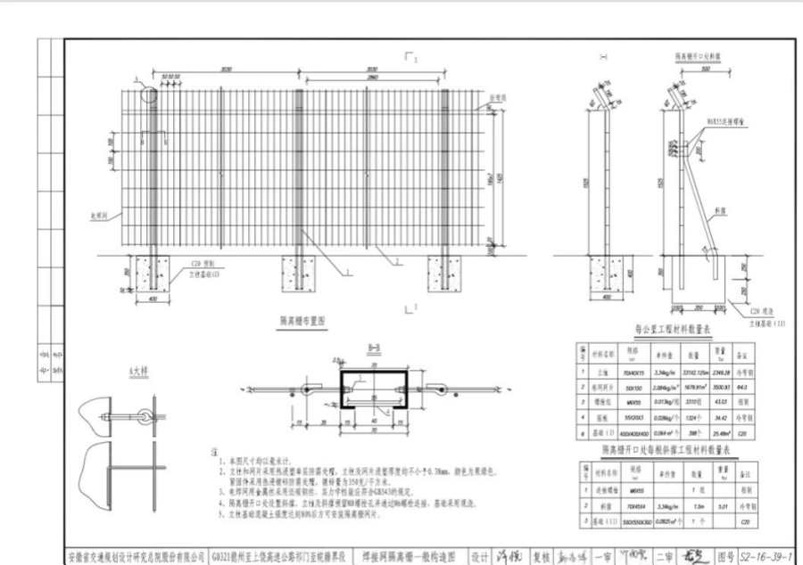 4、隔離柵開口處設(shè)置斜撐,立柱及斜撐預(yù)留M8螺栓孔并通過M6螺栓連接,基礎(chǔ)采用現(xiàn)澆。