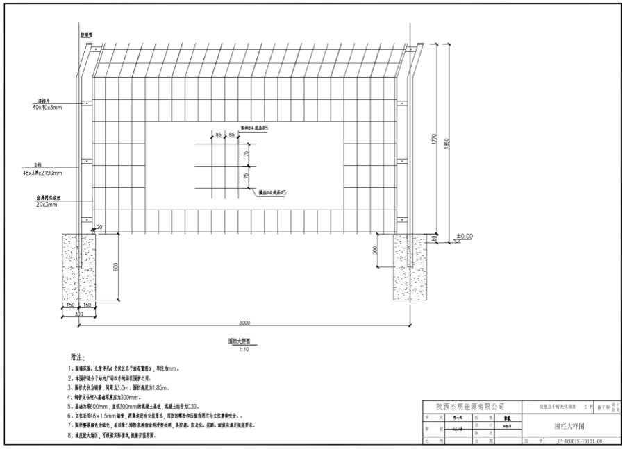 1、圍墻范圍、長度詳見《光伏區(qū)總平面布置圖》,單位為mm。