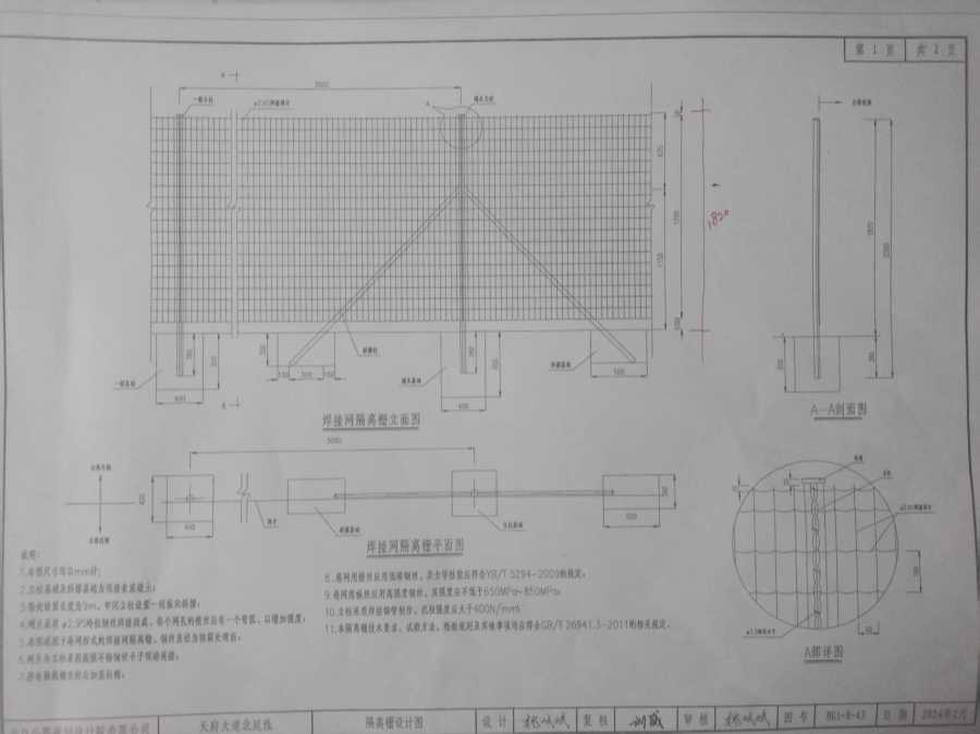 5.本圖適用于卷網(wǎng)形式的焊接網(wǎng)隔離柵,鋼絲直徑為防腐處理前。