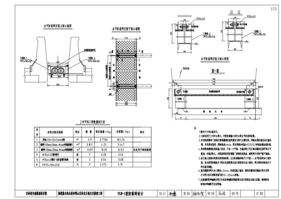 2.本圖適用于2米中分帶大、中橋防捷墻之間中分帶水平防落網(wǎng)設(shè)置。